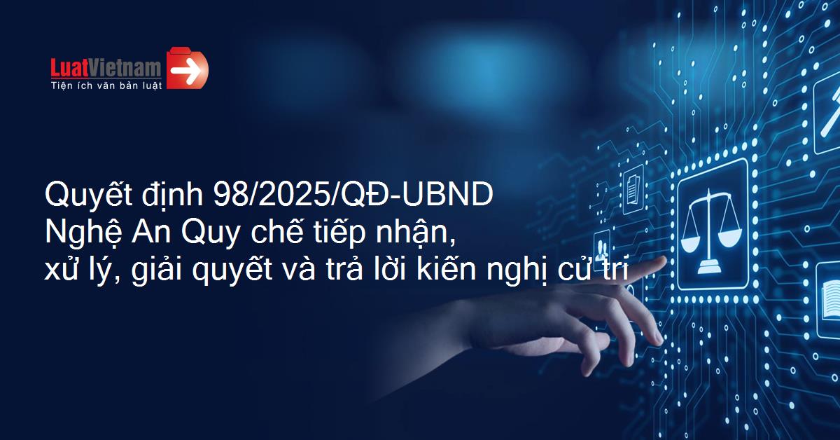 Quyết định 98/2025/QĐ-UBND của Ủy ban nhân dân tỉnh Nghệ An ban hành Quy chế tiếp nhận, xử lý, giải quyết và trả lời kiến nghị của cử tri trên địa bàn tỉnh Nghệ An