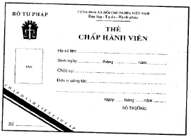 Phía dưới có dòng chữ thẻ Chấp hành viên với các nội dung: Họ và tên; ngày, tháng, năm sinh; chức vụ; đơn vị công tác; ngày, tháng, năm cấp Thẻ.