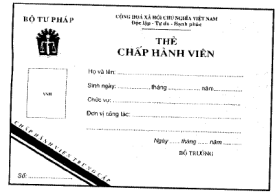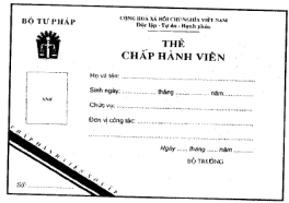 Phần bên trái Thẻ: phía trên Thẻ có dòng chữ “Bộ Tư pháp”, dưới dòng chữ là hình biểu tượng ngành tư pháp màu đỏ, dưới biểu tượng ngành Tư pháp là ảnh của Chấp hành viên cỡ 2 x 3 cm, có giáp lai bằng dấu nổi ở góc dưới bên phải ảnh, dưới ảnh là số hiệu của thẻ Chấp hành viên.