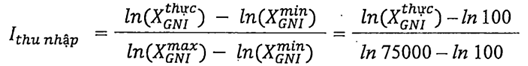Ithu nhập: Chỉ số thu nhập, được tính thông qua chỉ tiêu tổng thu nhập quốc gia (GNI) bình quân đầu người theo sức mua tương đương (PPP).