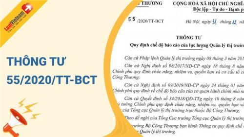 Ngày 31/12/2020, Bộ Công Thương đã ban hành Thông tư 55/2020/TT-BCT về việc quy định chế độ báo cáo của lực lượng Quản lý thị trường.