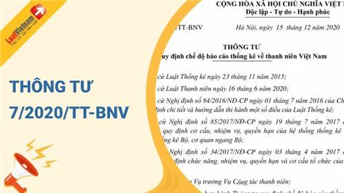 Ngày 15/12/2020, Bộ Nội vụ đã ban hành Thông tư 7/2020/TT-BNV về việc quy định chế độ báo cáo thống kê về thanh niên Việt Nam.