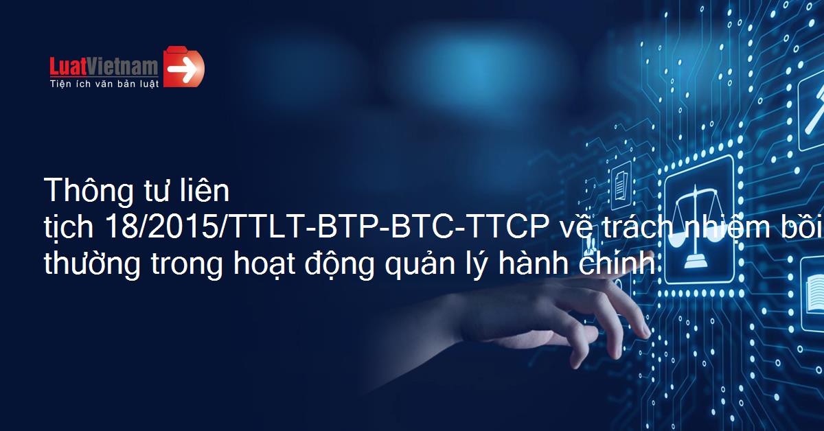 Căn cứ Thông tư liên tịch số 18/TTLT-BTP-BTC-TTCP ngày 14/12/2015 hướng dẫn thực hiện trách nhiệm bồi thường của Nhà nước trong hoạt động quản lý hành chính của Bộ Tư pháp, Bộ Tài chính, Thanh tra Chính phủ;