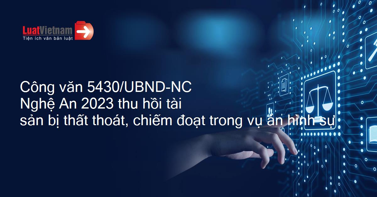 Công văn 5430/UBND-NC Nghệ An 2023 thu hồi tài sản bị thất thoát, chiếm đoạt trong vụ án hình sự
