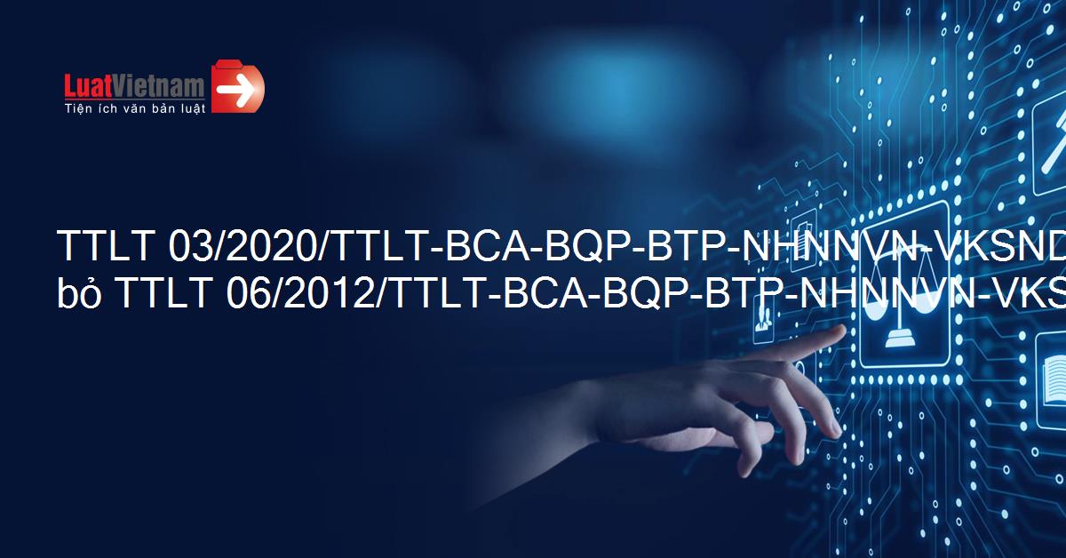 TTLT 03/2020/TTLT-BCA-BQP-BTP-NHNNVN-VKSNDTC-TANDTC bãi bỏ TTLT 06/2012/TTLT-BCA-BQP-BTP-NHNNVN-VKSNDTC-TANDTC