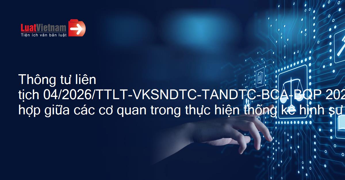 Thông tư liên tịch 04/2026/TTLT-VKSNDTC-TANDTC-BCA-BQP 2026 quy định phối hợp giữa các cơ quan trong thực hiện thống kê hình sự