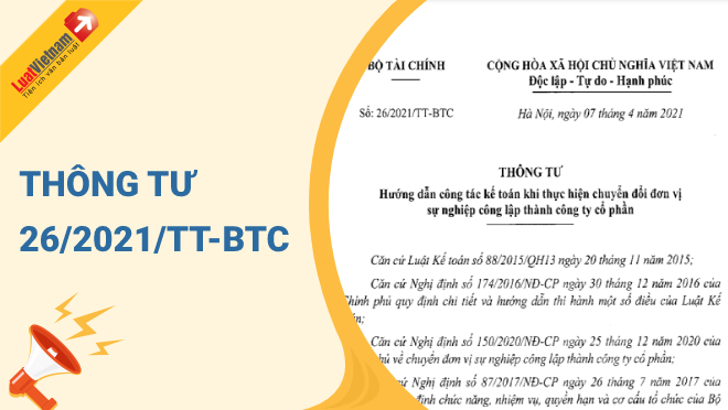 Ngày 07/4/2021, Bộ Tài chính ban hành Thông tư 26/2021/TT-BTC về việc hướng dẫn công tác kế toán khi thực hiện chuyển đổi đơn vị sự nghiệp công lập thành công ty cổ phần.