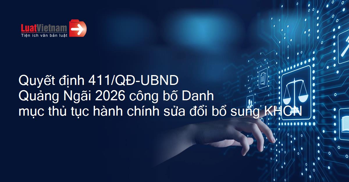 Quyết định 411/QĐ-UBND Quảng Ngãi 2026 công bố Danh mục thủ tục hành chính sửa đổi bổ sung KHCN
