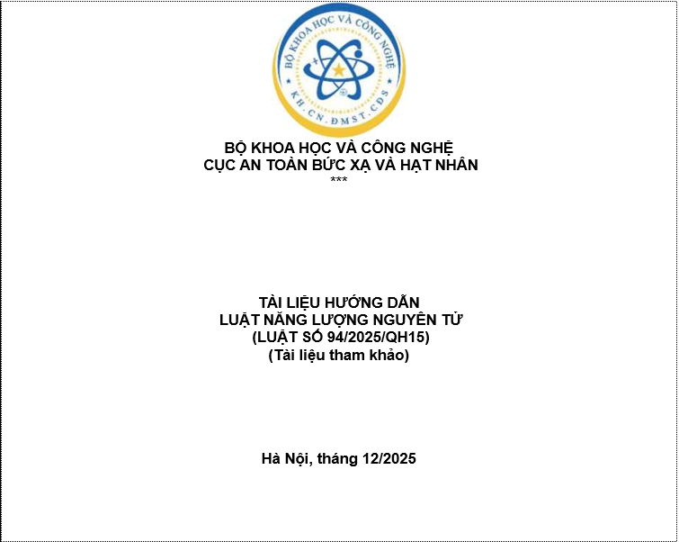 Ngày 28/12/2025, Bộ Khoa học và Công nghệ đã ban hành Quyết định 4484/QĐ-BKHCN về việc ban hành Tài liệu hướng dẫn Luật Năng lượng nguyên tử số 94/2025/QH15. Quyết định này có hiệu lực từ ngày ký ban hành.