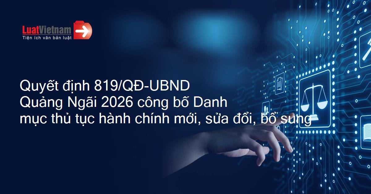 Quyết định 819/QĐ-UBND Quảng Ngãi 2026 công bố Danh mục thủ tục hành chính mới, sửa đổi, bổ sung