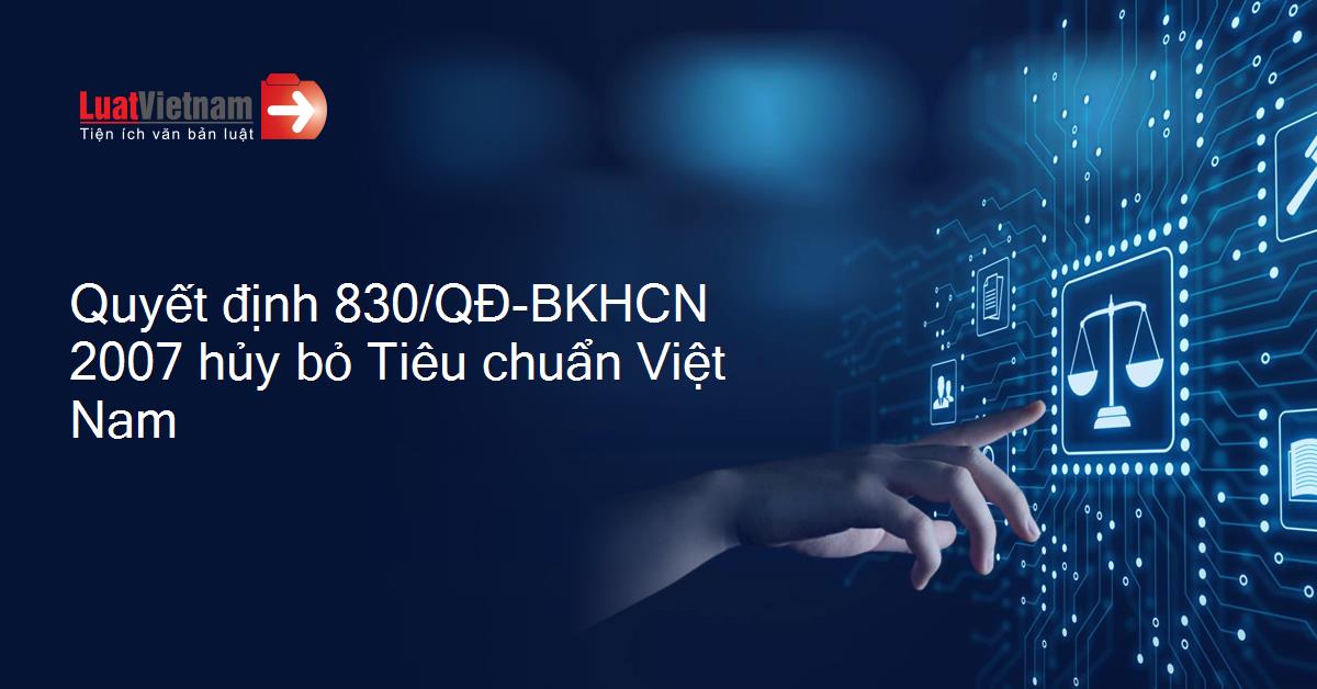 Ngày 23/05/2007, Bộ Khoa học và Công nghệ ban hành Quyết định 830/QĐ-BKHCN về việc hủy bỏ Tiêu chuẩn Việt Nam.