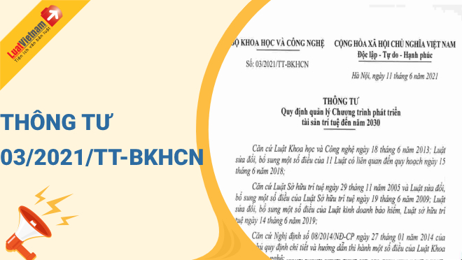 Ngày 11/06/2021, Bộ Khoa học và Công nghệ ban hành Thông tư 03/TT-BKHCN về việc quy định quản lý Chương trình phát triển tài sản trí tuệ đến năm 2030.