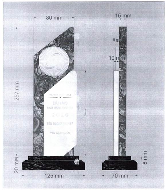 2.1. Hình dạng và kích thước cúp Giải Vàng chất lượng quốc gia