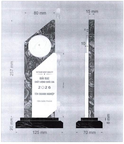2.2. Hình dạng và kích thước cúp Giải Bạc chất lượng quốc gia