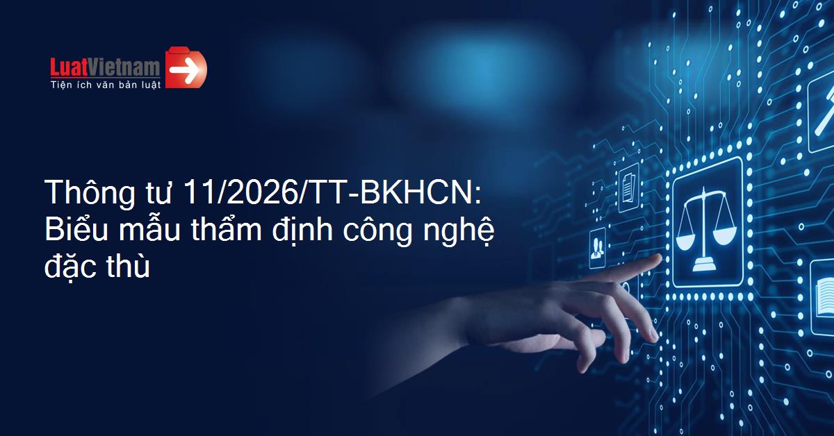 Ngày 31/03/2026, Bộ Khoa học và Công nghệ đã ban hành Thông tư 11/2026/TT-BKHCN, có hiệu lực từ ngày 01/04/2026, quy định về biểu mẫu hồ sơ thực hiện thủ tục thẩm định công nghệ trong các trường hợp đặc thù, khi Nhà nước mua và phổ biến công nghệ.