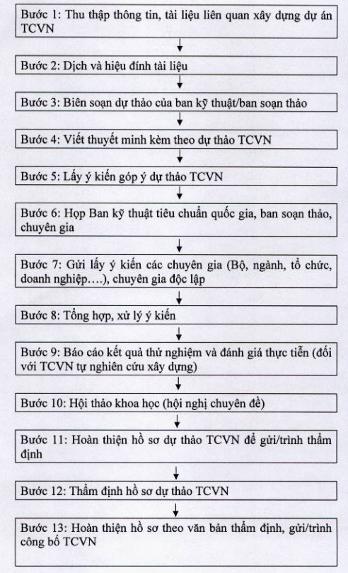 1. Tiêu chuẩn quốc gia là tiêu chuẩn do Bộ trưởng, Thủ trưởng cơ quan ngang bộ, Thủ trưởng cơ quan thuộc Chính phủ tổ chức xây dựng dự thảo tiêu chuẩn quốc gia thuộc ngành, lĩnh vực được phân công quản lý; Bộ trưởng Bộ Khoa học và Công nghệ tổ chức thẩm định dự thảo tiêu chuẩn quốc gia và công bố tiêu chuẩn quốc gia theo trình tự, thủ tục quy định.