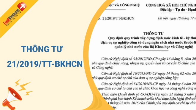 Thông tư 21/2019/TT-BKHCN quy trình xây dựng định mức kinh tế - kỹ thuật dịch vụ sự nghiệp công