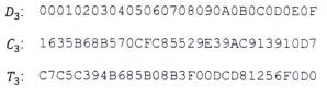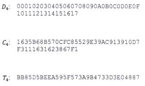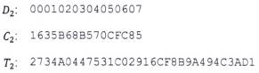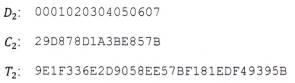 b) Đặt m và r là các số nguyên duy nhất xác định sao cho C chứa một tổng ((m - 1 )n + r + t)-bit, trong đó 0 < r ≤ n. Chia C thành một chuỗi các khối: C1, C2,..., Cm, T. Đặt C1 chứa n-bit đầu tiên của C, C2 chứa n-bit kế tiếp và cứ như thế cho đến khi Cm chứa r-bit tiếp theo của C. Cuối cùng, đặt T là t-bit cuối cùng của C.