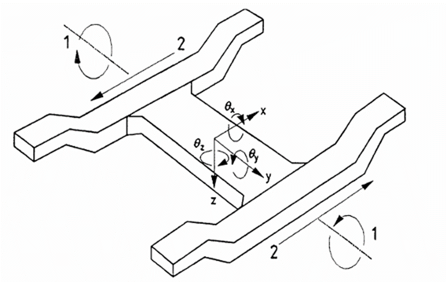Chu kỳ tải do xoắn bao gồm các tải (hoặc chuyển vị tương đương) tại các vị trí treo sơ cấp để tạo ra xoắn + θy và xoắn - θy trên khung giá chuyển hướng và cần được ngược với tải bán tĩnh.