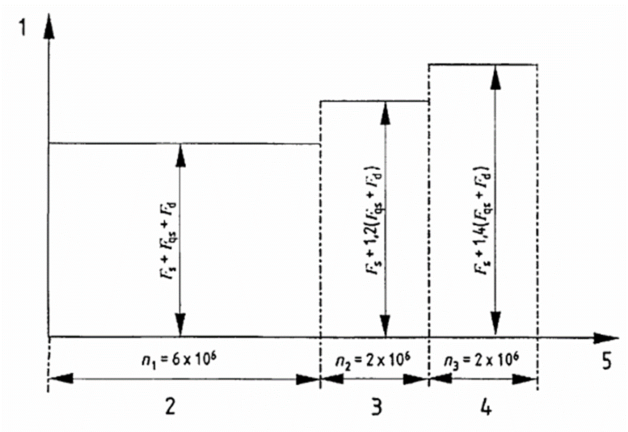 - Bước đầu tiên là 6 × 106 chu kỳ tác dụng của các lực thẳng đứng và lực ngang và 0,6 × 106 chu kỳ tác dụng của tải xoắn.