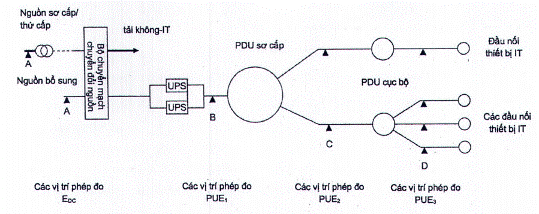 CHÚ THÍCH 1: Trong một số trường hợp, giá trị tỷ lệ nghịch của PUE là hiệu suất cơ sở hạ tầng DC (DCiE) được sử dụng.