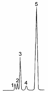 | Nhận dạng pic 1: 2- Metylpentan 2: 3- Metylpentan 3: n- Hexan 4: Metylxyclopentan 5: Xyclohexan (nội chuẩn) (với các thời gian lưu khác: n-heptan) |