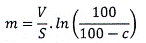V là thể tích của khu vực nguy hiểm (m3); nghĩa là thể tích được bao che trừ đi thể tích các cấu kiện cố định không thấm khí chữa cháy. T là nhiệt độ (°C); nghĩa là nhiệt độ thiết kế trong khu vực được bảo vệ; S là thể tích riêng (m3/kg); thể tích riêng của hơi quá nhiệt IG-55 ở áp suất 1,013 bar có thể được xác định gần đúng theo công thức: S = k1 + k2.T Trong đó: c là nồng độ (%); nghĩa là nồng độ theo thể tích của IG-55 trong không khí tại nhiệt độ xác định và áp suất tuyệt đối 1,013 bar. | |||||||||