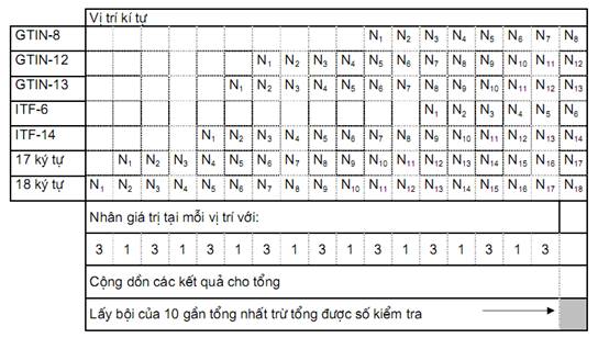Cách tính số kiểm tra tiêu chuẩn cho các cấu trúc dữ liệu của GS1