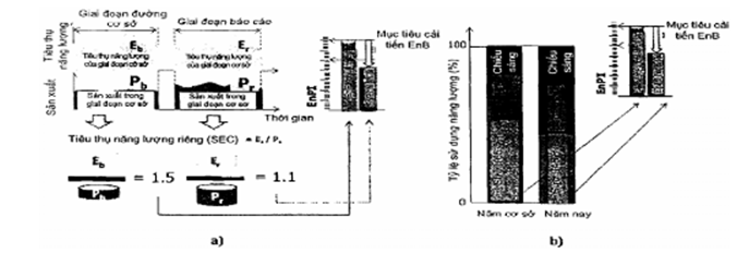 Các ví dụ về so sánh EnPI đối với ba yếu tố hiệu quả năng lượng được thể hiện dưới đây.
