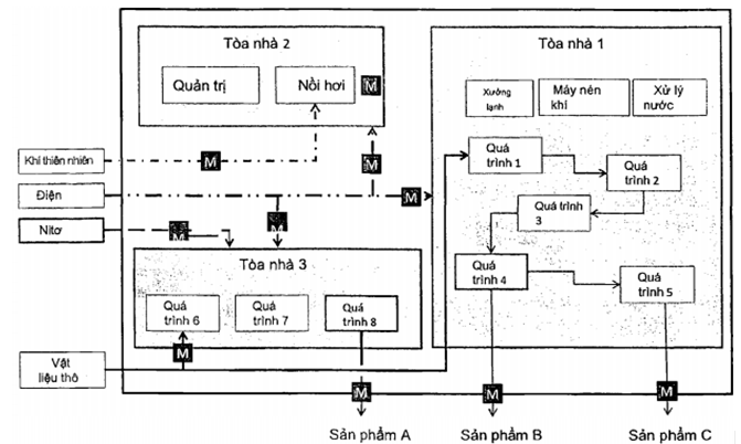| 2.1 Tiêu thụ năng lượng của dây chuyền A (kWh/ngày) | - Kiểm soát tổng chi phí sản xuất - Lập ngân sách | Giá trị năng lượng đo được EnPI | - Kỹ sư nhà máy A - Quản lý ngân sách - Bộ phận kế toán |