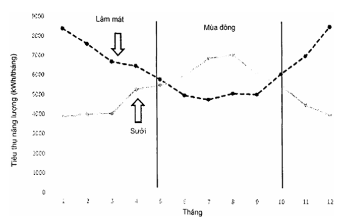 Tiêu thụ năng lượng (kWh) = A + B x Sản phẩm A + C x T