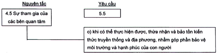 CHÚ THÍCH 3: Khía cạnh đạo đức có thể bao gồm một loạt các vấn đề về xã hội, công bằng trong kinh tế và tính bền vững, ví dụ: sử dụng nguồn lực địa phương, thương mại công bằng, đối xử nhân đạo với động vật. Nhiều khía cạnh đạo đức được nêu trong các tài liệu và chương trình quốc tế nêu trong Thư mục tài liệu tham khảo.