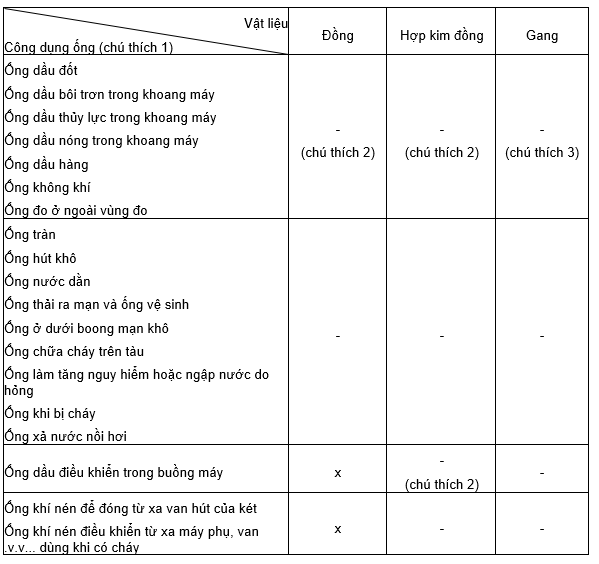 Vật liệu dùng chế tạo hệ thống máy không được quy định trong Chương này phải thỏa mãn những quy định ở (1) và (2) sau đây: