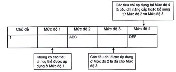 Mức độ của chủ đề nhất định của một yếu tố được xem là đạt được khi tất cả các tiêu chí được nêu ở mức độ đó của chủ đề được đáp ứng đầy đủ. Việc đạt được mức độ cụ thể của chủ đề nhất định của một yếu tố đòi hỏi tất cả các tiêu chí của mức độ thấp hơn đều được đáp ứng đầy đủ.