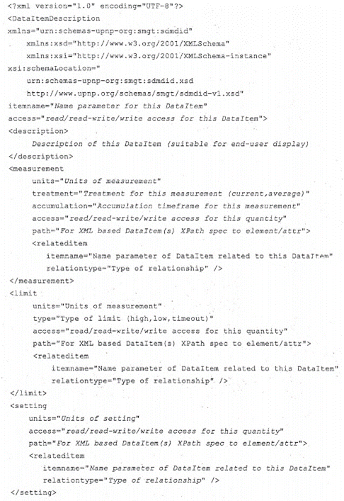 [25] XML Schema UPnP IoTManagementAndControl Sensor DataModel DataItem Description, UPnP Forum, July 1, 2013. Available at: http:.//www.upnp.org/schemas/smgt/sdmdid-v1-20130701.xsd. Latest version available at: http://www.upnp.org/schemas/smgt/sdmdid.xsd.