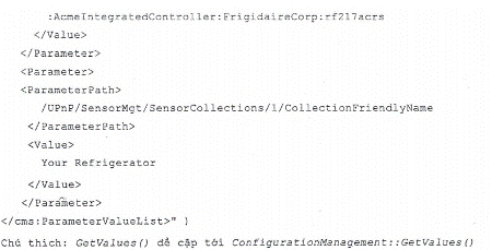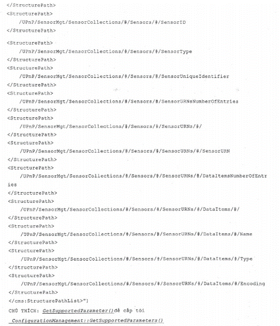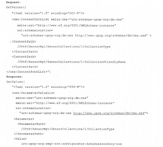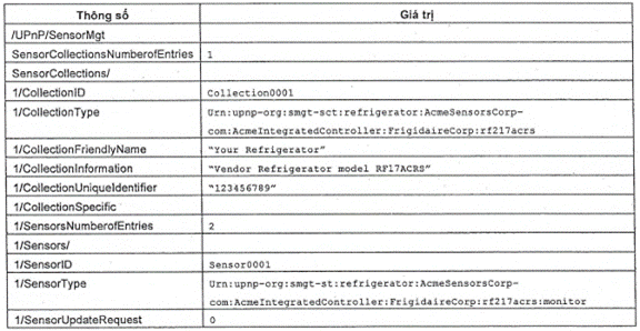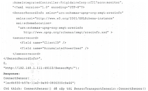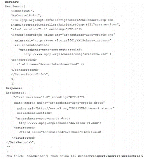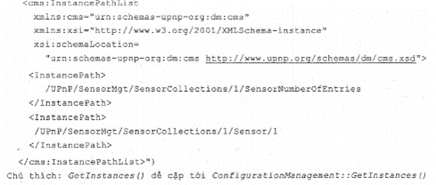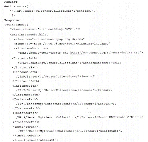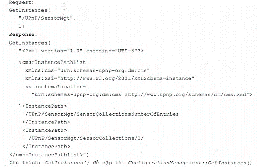 Mặt khác, việc thực thi của điểm điều khiển có thể yêu cầu các thực thể SensorCollection và bộ cảm biến trong danh sách kết hợp bằng cách gọi ra hoạt động GetInstances(“UPnP/SensorMgt/SensorCollections”,3)
