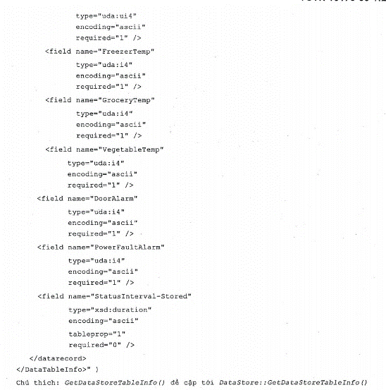 Tài liệu mô tả DataItem (đối với mỗi DataItem) có thể được lưu trữ trong từ điển. DataTable như sau: