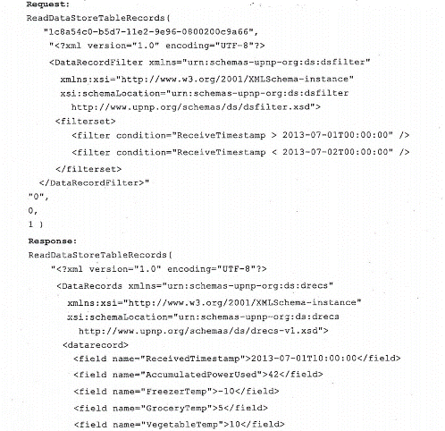 [21] XML Schema UPnP DataStore DataRecord, UPnP Forum, July 1, 2013. Available at: http://www.upnp.org/schemas/ds/drecs-v1-20130701.xsd. Latest version available at: http://www.upnp.org/schemas/ds/drecs.xsd