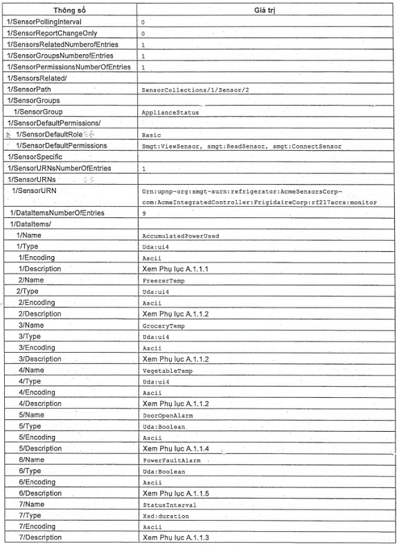 Cuối cùng, điểm điều khiển có thể nhận được toàn bộ thực thể biểu diễn bởi thiết bị quản lý cảm biến bằng cách sử dụng hoạt động GetInstances(“/UPnP/SensorMgt/”,0) trong đó SearchDepth là 0 cho biết độ sâu tìm kiếm là không giới hạn. Điều đó phải được ghi chú, tuy nhiên thiết bị IoTManagementAndControl đó có thể biểu diễn số lượng lớn các bộ cảm biến.