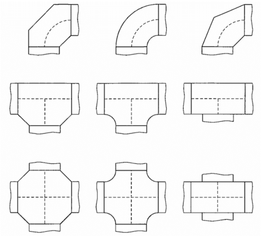 CHÚ THÍCH: Ví dụ điển hình là bộ ghép nối, chi tiết cong, chi tiết chữ T, chi tiết chữ thập.