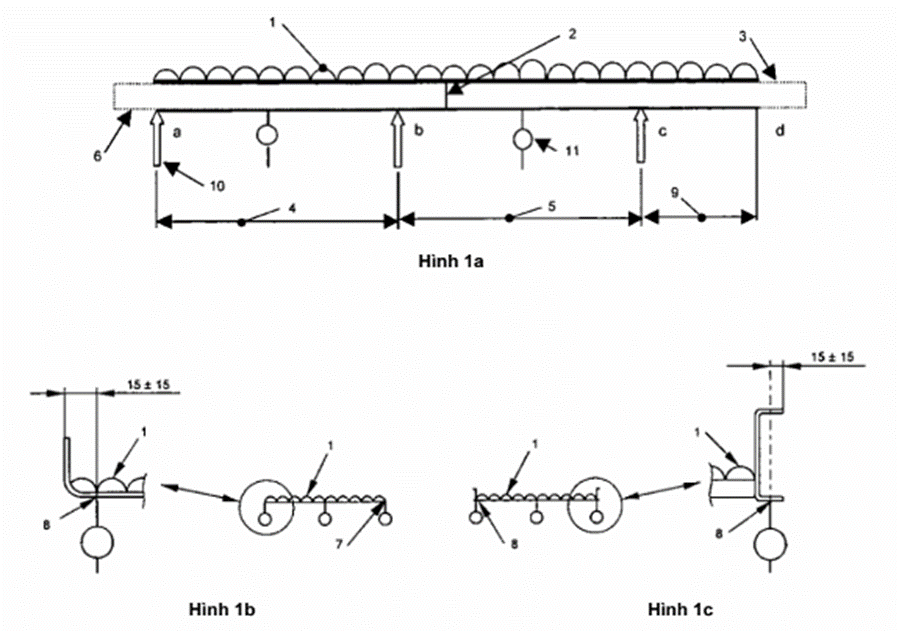 CHÚ THÍCH: Phương pháp đặt tải phân bố đồng đều được thể hiện trong Phụ lục D và Phụ lục E.