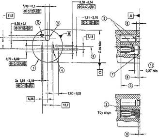 | Hình vẽ không nhằm chi phối thiết kế mà chỉ để thể hiện kích thước. Đối với các ký hiệu thể hiện dung sai về dạng hoặc vị trí, xem TCVN 5906 (ISO 1101). |