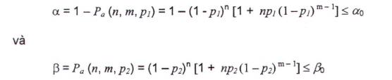 đối với n và m chịu rủi ro của nhà sản xuất và rủi ro của người tiêu dùng α và β không vượt quá giá trị danh nghĩa (α0 và β0 tương ứng, nghĩa làchịu