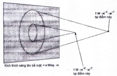 trong đó D là kích thước nguồn và r là khoảng cách giữa nguồn có độ chói tích hợp L và mặt phẳng có độ chiếu xạ E.