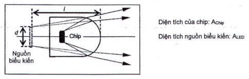 Hình D.4 - Sự hình thành ảnh ảo của chip LED bằng các thấu kính tích hợp