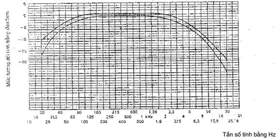 | Tần số, Hz | Đáp tuyến, dB | Dung sai, dB |