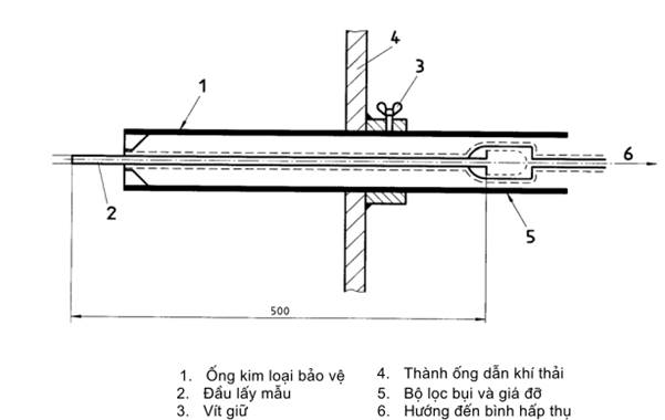 Hình 1 - Vị trí của đầu lấy mẫu, giá đỡ bộ lọc và ống bảo vệ