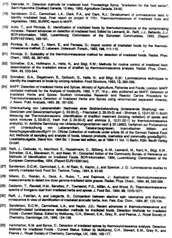 Foodstuffs – Thermolumiecence detection of irradiated food from whitch silicate minerals can be isolated