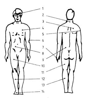 Theo các chuẩn cứ này, trong môi trường nóng, nhiệt độ da tại chỗ tối đa là 45 oC. Trong các môi trường lạnh, là 17 oC đối với nhiệt độ da trán và 4 oC cho các nhiệt độ các chi (đặc biệt các ngón tay và ngón chân).
