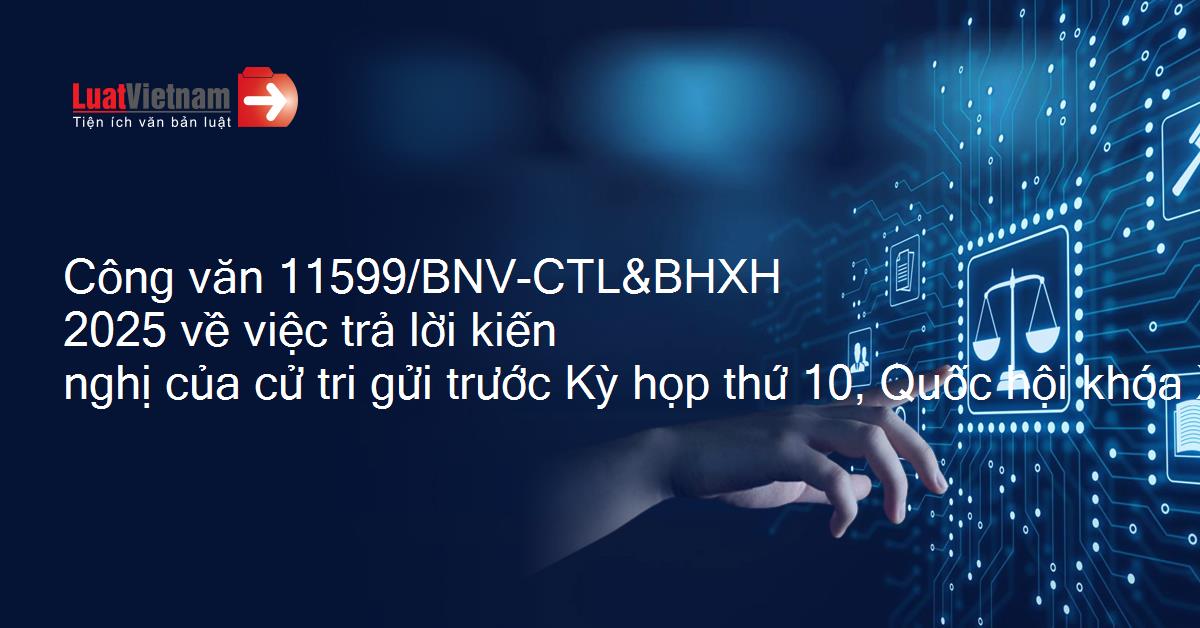 Công văn 11599/BNV-CTL&BHXH 2025 về việc trả lời kiến nghị của cử tri gửi trước Kỳ họp thứ 10, Quốc hội khóa XV